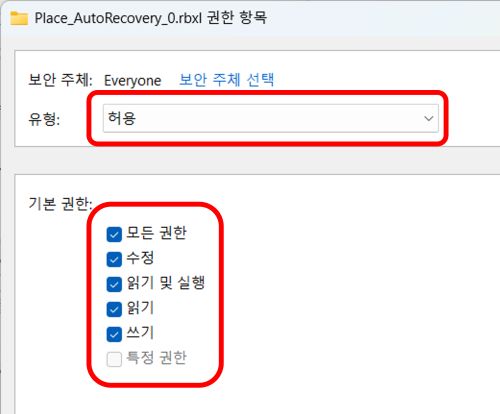 - 권한 해결: 파일 속성에서 소유자를 'Everyone'으로 변경하고 모든 권한을 부여하세요.